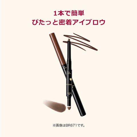 簡単2ステップ。密着するから薄れにくいジェル生まれのペンシルと、ふんわりパウダーでグラデ美眉が1日中*続くダブルエンドアイブロウ。