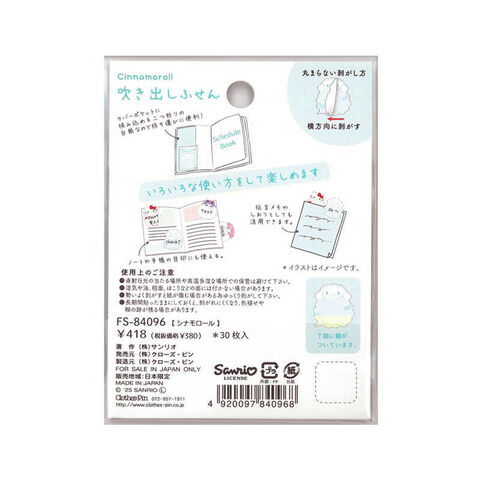 クローズピン サンリオ 雲形吹き出しふせんシナモロール FS84096