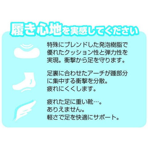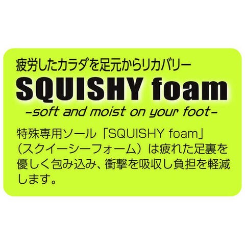 ●特殊専用ソール「SQUISHY foam(スクイーシーフォーム)」は疲れた足裏を優しく包み込み、衝撃を吸収し負担を軽減します。