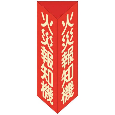 日本緑十字 緑十字消防標識火災報知機三角柱・蓄光タイプ消火器F(大)300×100mm三角エンビ 013106