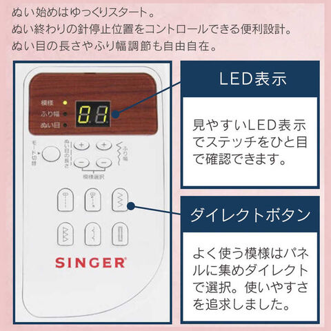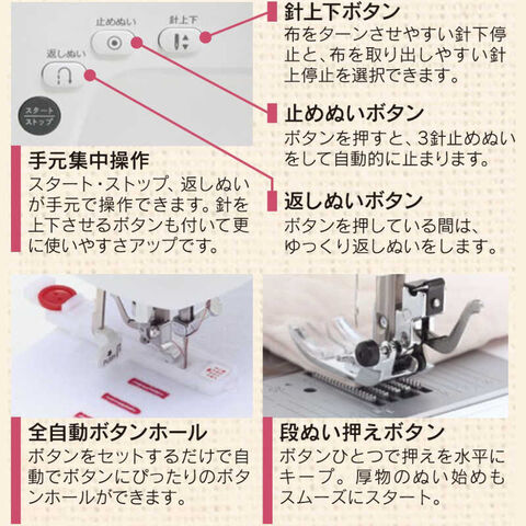 ・スタート・ストップ・返し縫いが手元で操作できます。