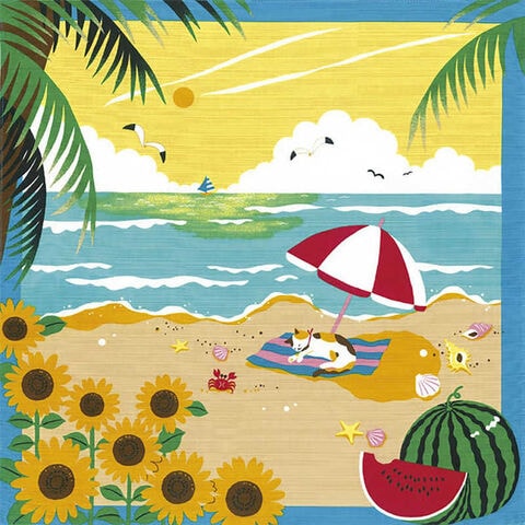 三陽商事 風呂敷 ランチクロス お弁当 50cm 中巾 三毛猫みけの夢日記 小ふろしき みけの夏休み フロシキランチクロスオベント