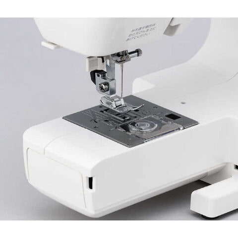 付属品:基本押え、ボタンホール押え、ボビン、シームリッパー、専用ドライバー、ミシン針、糸立て棒、糸こま押え、電源コード、ハードカバー、取扱説明書