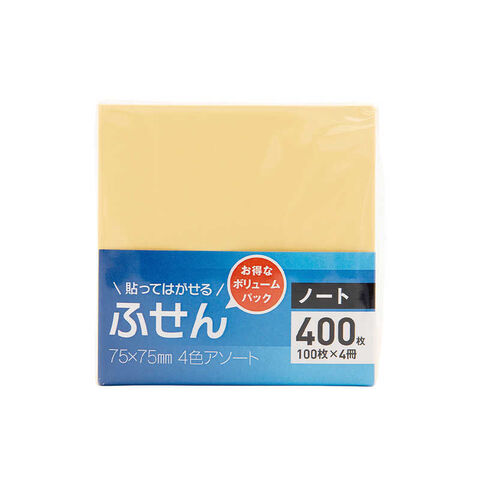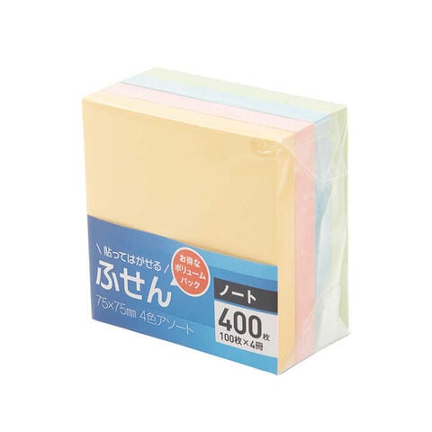 ブルー・グリーン・ピンク・イエロー 100枚×4冊 ふせんサイズ:縦75x横75mm 材質:紙
