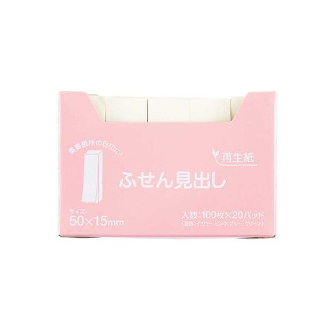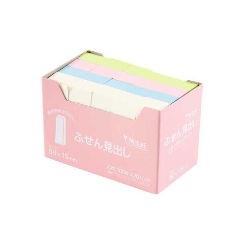 ハピラ 再生紙ふせん見出 50x15mm 100枚x20冊 4色各5冊 P5015