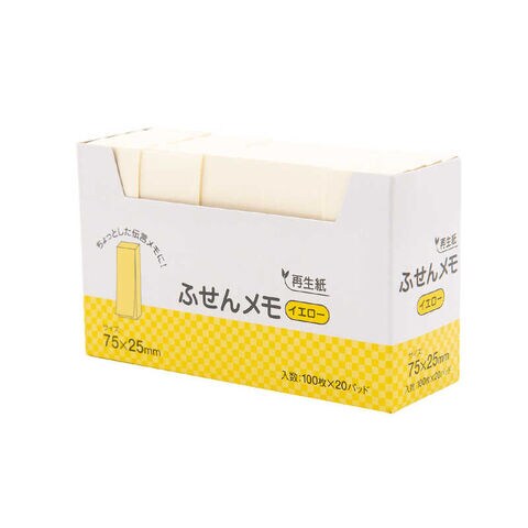 ハピラ 再生紙ふせんメモ 75x25mm イエロー 100枚x20冊 P7525YE