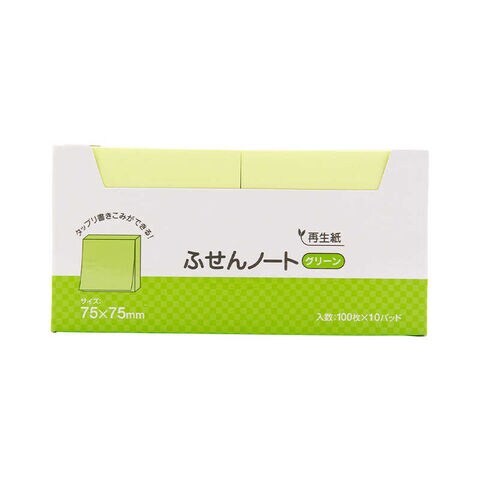 ハピラ 再生紙ふせんノート 75x75mm グリーン 100枚x10冊 P7575GR