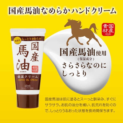 乾燥しがちな手肌に、古来から万能保湿剤として使用される馬油が、潤いを持続させます。