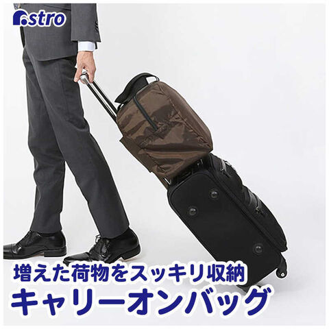 (キャリーオンバッグ):スーツケース(キャリーバッグ)の上にのせて、そのまま移動可能な軽量で便利なバッグ。