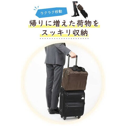(持ち運びラクラク):スーツケースの伸縮ハンドルにバッグの背面部を差し込めるので、荷物を安定して持ち運び可能。