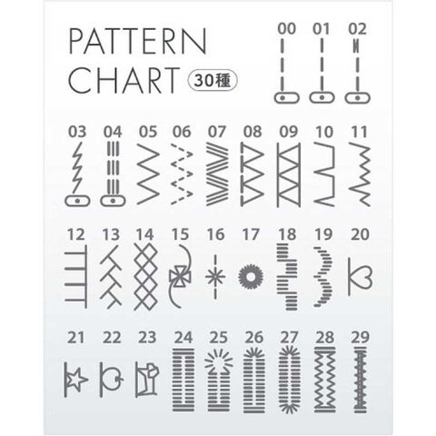 ● 厳選された30種類のぬいパターンで直線縫いはもちろん、ジグザグ、ボタンホール、かわいい模様など、いろんなステッチをぬうことができます。