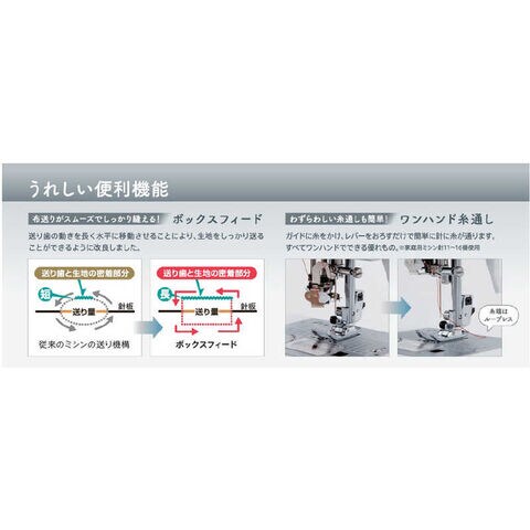 ● 布送りがスムーズでしっかりぬえる「ボックスフィード」