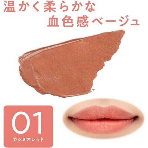 ●カラー:01 カシミアレッド/温かく柔らかな印象の血色感ベージュ、合わせるメイクを選ばない万能カラー