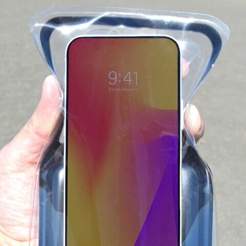 防水ケースにスマートフォンを入れたまま音楽再生や通話ができます。