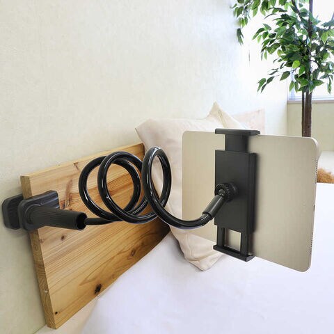 また、アーム部分は硬めに設計されているため、タブレットをセットした場合もしっかりと支えます。