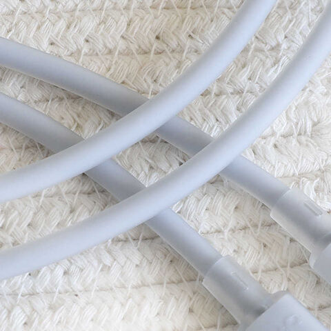 シリコンケーブルの絡まりにくさに、ホコリが付きにくいさらさらとした手触りが合わさることで、思わず触れてしまいたくなる素材が生まれました。