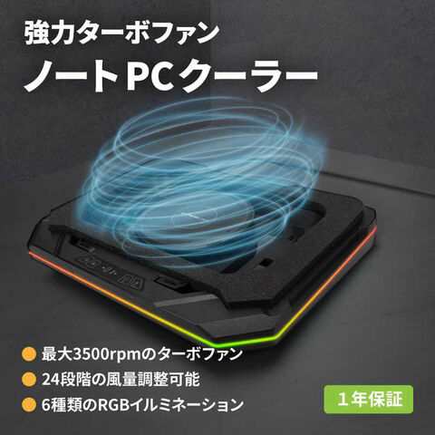 OWLTECH ゲーミング ノートPCクーラー タッチパネル搭載 最大3500rpm ターボファン搭載 RGBイルミネーション対応 OWL-TGNC-RGB