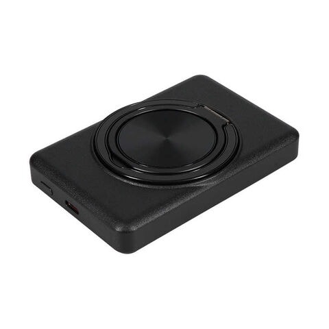 OWLTECH モバイルバッテリー 5000mAh 準固体電池採用 マグネット式ワイヤレス充電 スマホリング搭載 USB Type-C入出力 [USB Power Delivery対応 / 1ポート] ブラック OWL-LPB5025MG-BK