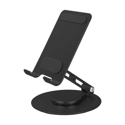 OWLTECH 折りたためるアルミスタンド スマートフォン/タブレット向け 台座が360度回転&角度調節可能 ブラック OWL-STD14-BK
