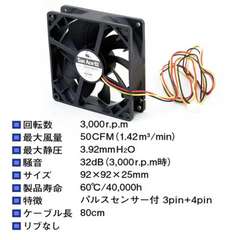 パルスセンサーつき3pin/4pin対応、山洋電気製90mmケースファン。