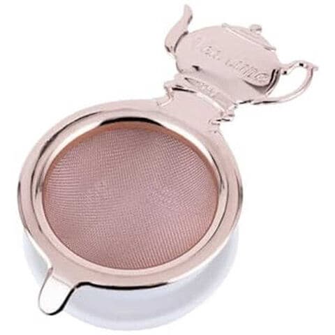 ハンドルの反対側にフックが付いているのでカップに乗せたまま両手でお茶を注ぐことができるティーストレーナーです。