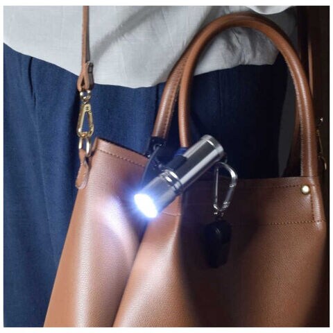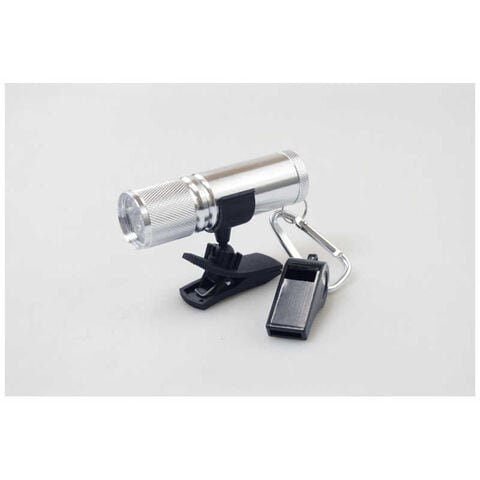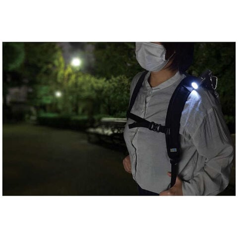 小さいのに明るいLEDライトと、よく響いて吹きやすいホイッスルのセットです。クリップ付きで、手で持つ必要もなく両手が空いて便利。バッグやリュックに手軽に装着できます。またLEDライトをクリップにセットしている時は、細かな照射角度もフレキシブルジョイントで自在に調節可能です。ホイッスルを使うときは、サッと取り外して吹けるので緊急時も安心です。