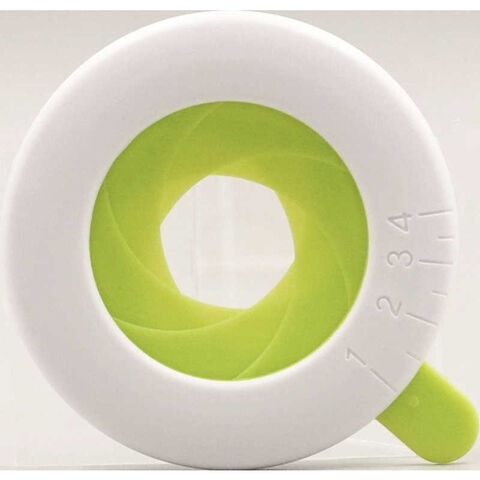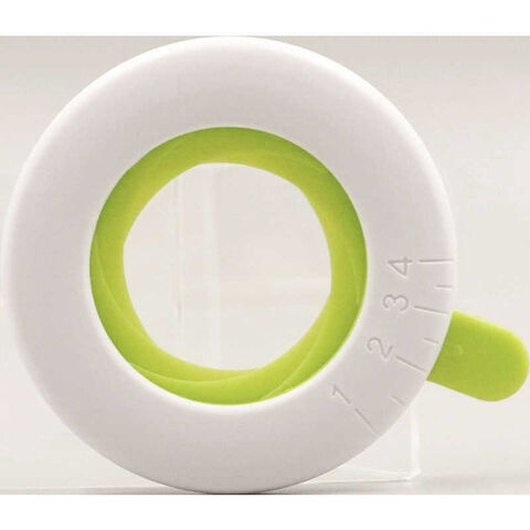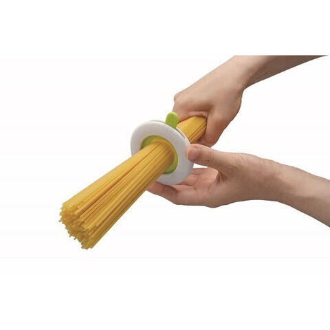 ちいさくて収納に困らないパスタメジャー。レバーを回すことで、100g、150g、200g、250g、300g、350g、400gと細かく量ることができます。手のひらサイズで引き出しに入れやすく、裏面に磁石がついているので冷蔵庫などに貼り付けて収納も可能。ビビットなグリーンとホワイトの組み合わせがキッチンに映えます。●サイズ(約):9.2×7.8×1.3cm ●重量(約):24g ●材質:ABS樹脂、ポリプロピレン、ネオジム磁石