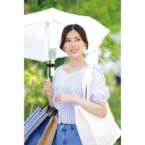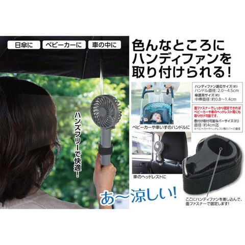 日傘に!ベビーカーに!車のヘッドレストに!ハンディファンを取り付けられます。