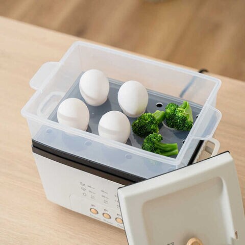 鍋に約200mlの水を入れて、付属の蒸しトレイに食材をのせるだけ。焼売やブロッコリー、ゆで卵などが本体にお任せで出来るため、お弁当や食事で「もう1品ほしい!」という時に重宝します。