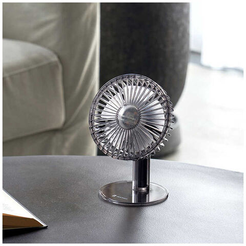 クリア素材が涼しげでおしゃれなファン。デスクに置いてもかわいくフォトジェニックなため、ギフトにもおすすめのアイテムです