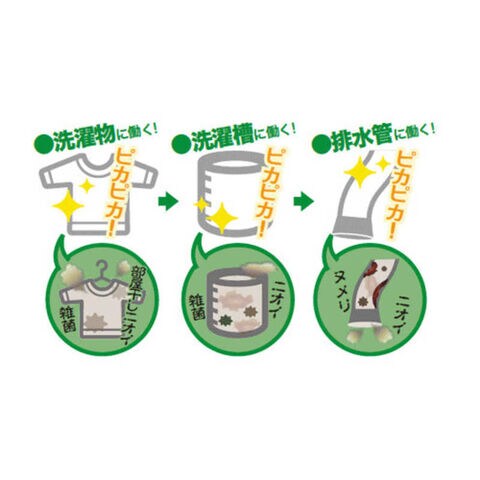 ・衣類や洗濯槽、排水管のイヤな臭いを防いでくれます。また、洗濯槽の汚れや排水管の詰まりも解消します。
