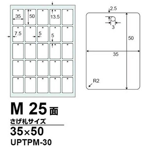 中川製作所 さげ札プリント用紙 M(A4サイズ:25面付・30シート) UPTPM‐30
