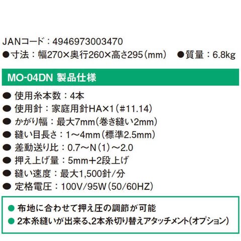 ジューキ 2本針4本糸ロックミシン [ロックミシン] MO-04DN