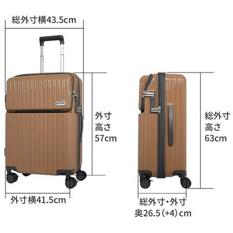 OUTDOOR スーツケース ファスナータイプ 旅行日数目安:5~6泊 56L 拡張機能付き ハーフオープン [TSAロック搭載] モカ OD-0890-57-MO