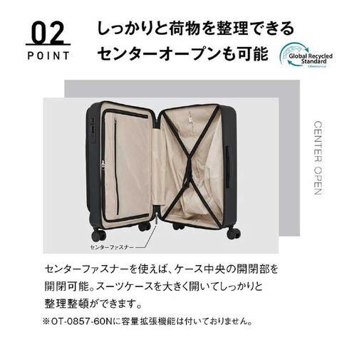 オルティモ スーツケース フロントオープン ハーフオープン ファスナータイプ 旅行日数目安: 5~6泊 約63L ストッパー付き アクアマリン OT-0857-60N-AM