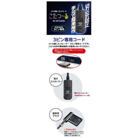 電子コントローラー付きこたつコード3m(メトロ専用)
