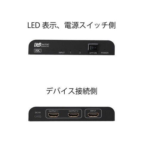 ラトックシステム 8K対応 1入力2出力 HDMI分配器 RS-HDSP2-8K