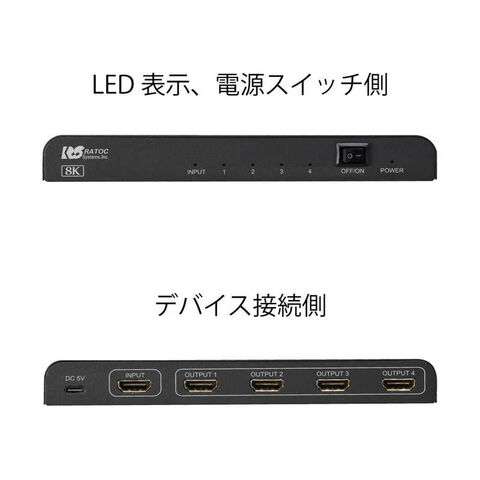 ラトックシステム 8K対応 1入力4出力 HDMI分配器 RS-HDSP4-8K