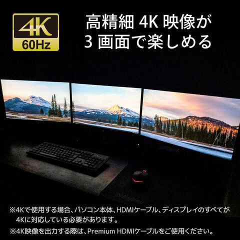 ※条件を満たしていても、PCのDP Altモード帯域、GPU仕様、DSC対応状況によっては、4K60Hz×3を出力できない場合があります。