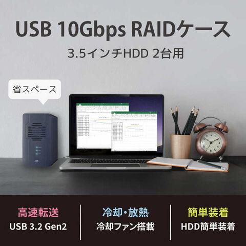 ラトックシステム USB 10Gbps RAIDケース(3.5インチHDD2台用) [3.5インチ対応 /SATA /2台] RS-EC32-R10G