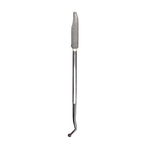 カーブした先細り形状のヤスリ部は、爪のすき間に入りやすくなっています。