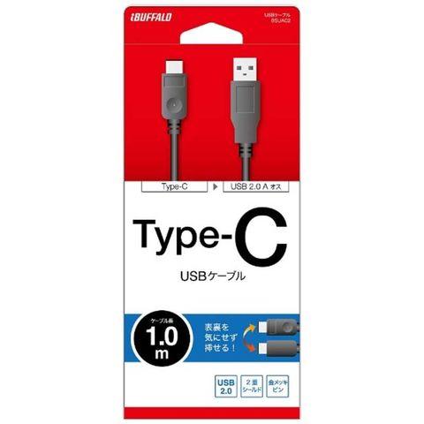BUFFALO 1.0m[USB-C ⇔ USB-A]2.0ケーブル 充電・転送 BSUAC210BK