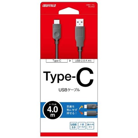 BUFFALO 4.0m[USB-C⇔USB-A]2.0ケーブル 充電・転送 ブラック BSUAC240BK