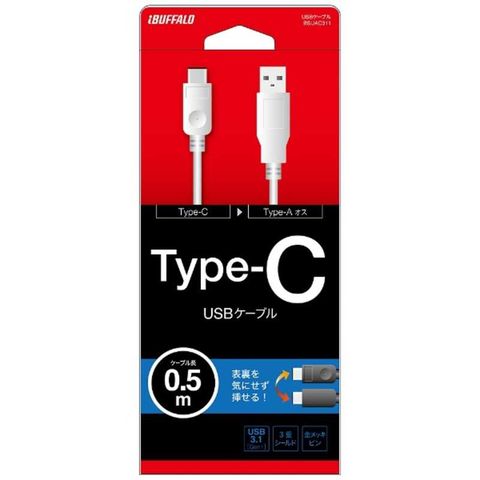 BUFFALO 0.5m[USB-C ⇔ USB-A]3.1 Gen1ケーブル 充電・転送 BSUAC31105WH