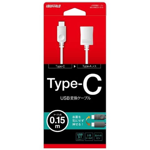 BUFFALO 0.15m[USB-C→USB-A]3.1 Gen1変換アダプタ ホワイト BSUAMC311015WH