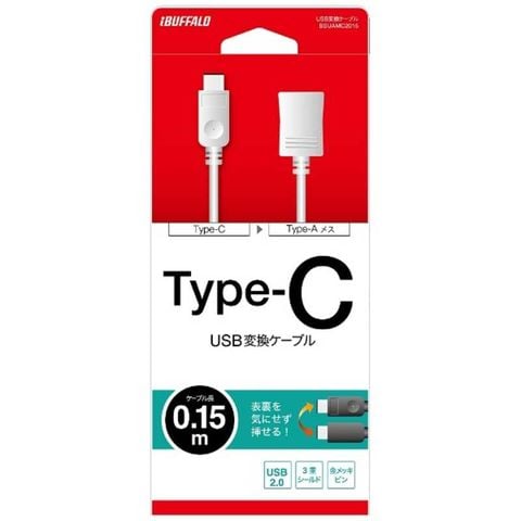 BUFFALO 0.15m[USB-C→USB-A]2.0変換アダプタ ホワイト BSUAMC2015WH