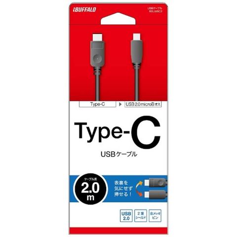 BUFFALO 2.0m[USB-C⇔USB microB]2.0ケーブル 充電・転送 ブラック BSUMBC220BK