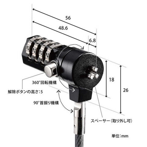 セキュリティースロットに直接セットし、パソコンや液晶モニター、外付けHDD等を盗難から守るダイヤル式ワイヤーロックです。