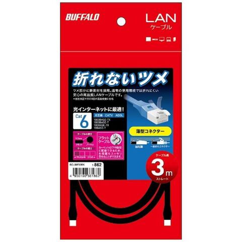 BUFFALO カテゴリー6 LANケーブル フラット(3m) BCLS6F30BK ブラック