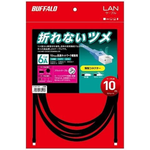 BUFFALO カテゴリー6 LANケーブル フラット(10m) BCLS6AF100BK ブラック